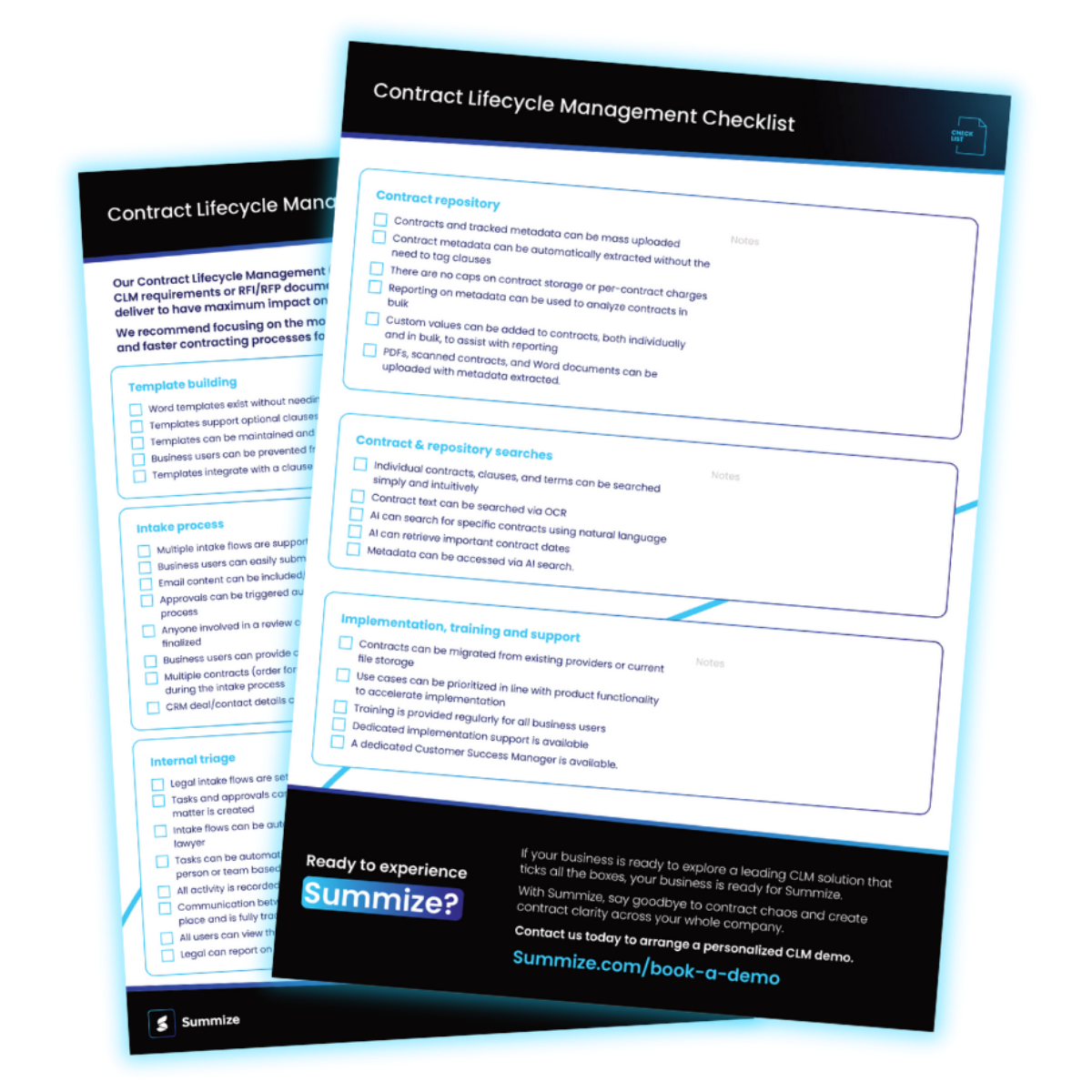 This is Summize's ultimate contract management checklist, where you'll find out: