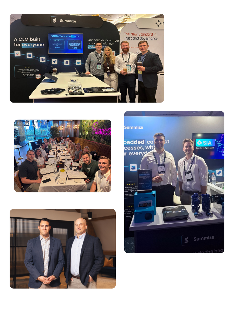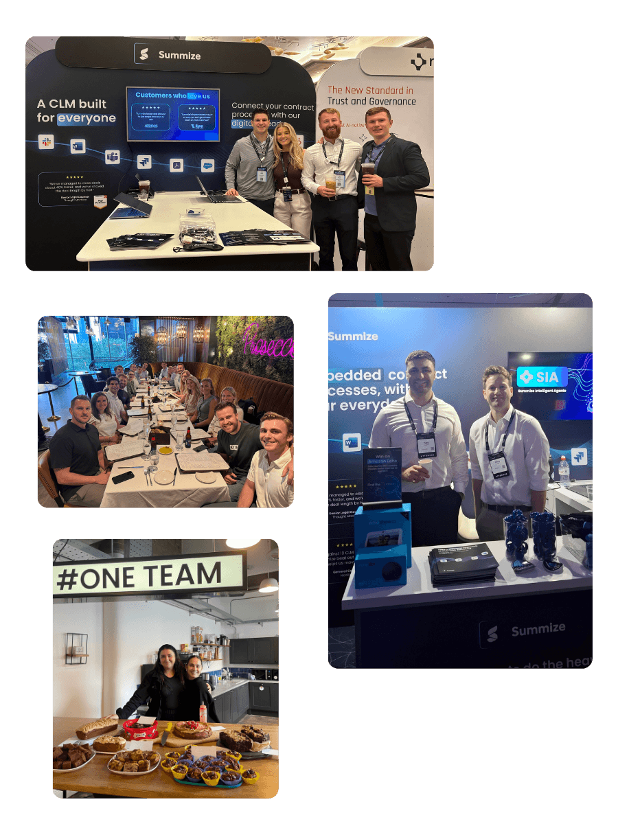I first spoke with Summize’s CEO Tom Dunlop around six months before I joined, and I was immediately excited by his vision for the business. It reminded me a lot of my early days in revenue enablement, where you could see meaningful investment starting to flow into a space that was ready for change. What stood out was how proactively Summize was educating the market – not just selling a product but helping understand the value of CLM, AI-powered workflows and automation. Through conversations with the wider leadership team, it was clear there was strong alignment around where the business was heading and how to get there.